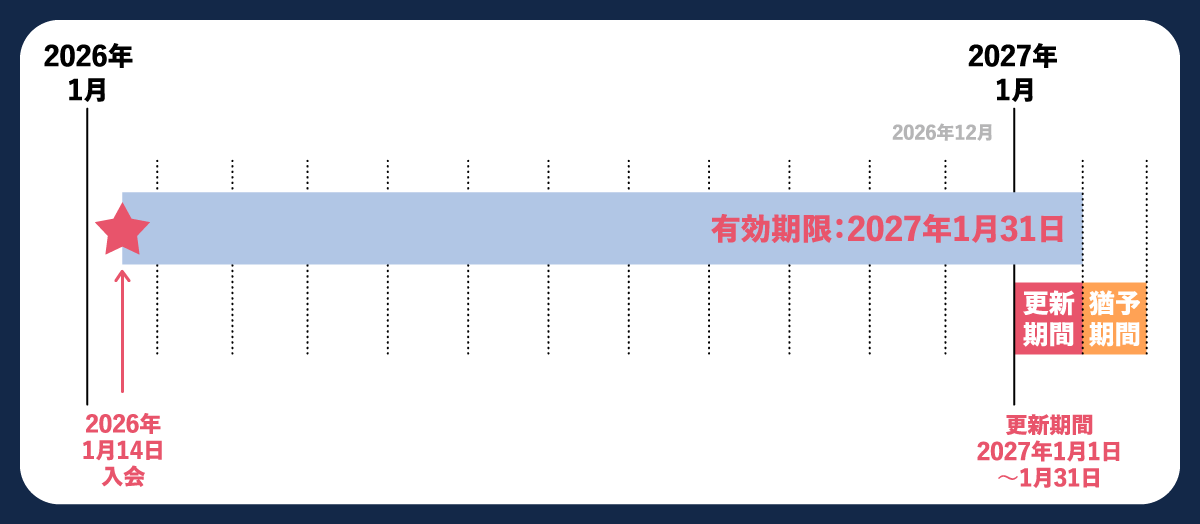 例:2025年12月16日に入会(年会費ご入金)の場合 → 2026年12月31日が有効期限となります。