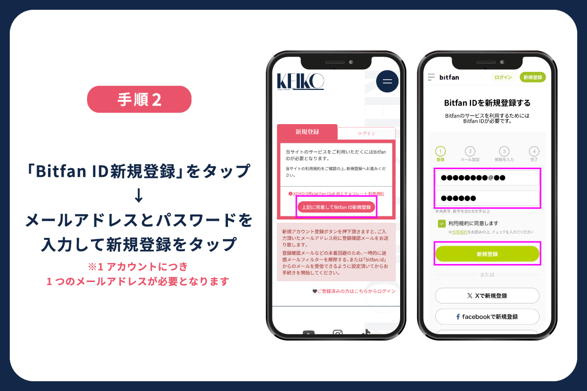以下よりBitfan IDの新規登録をお願いします