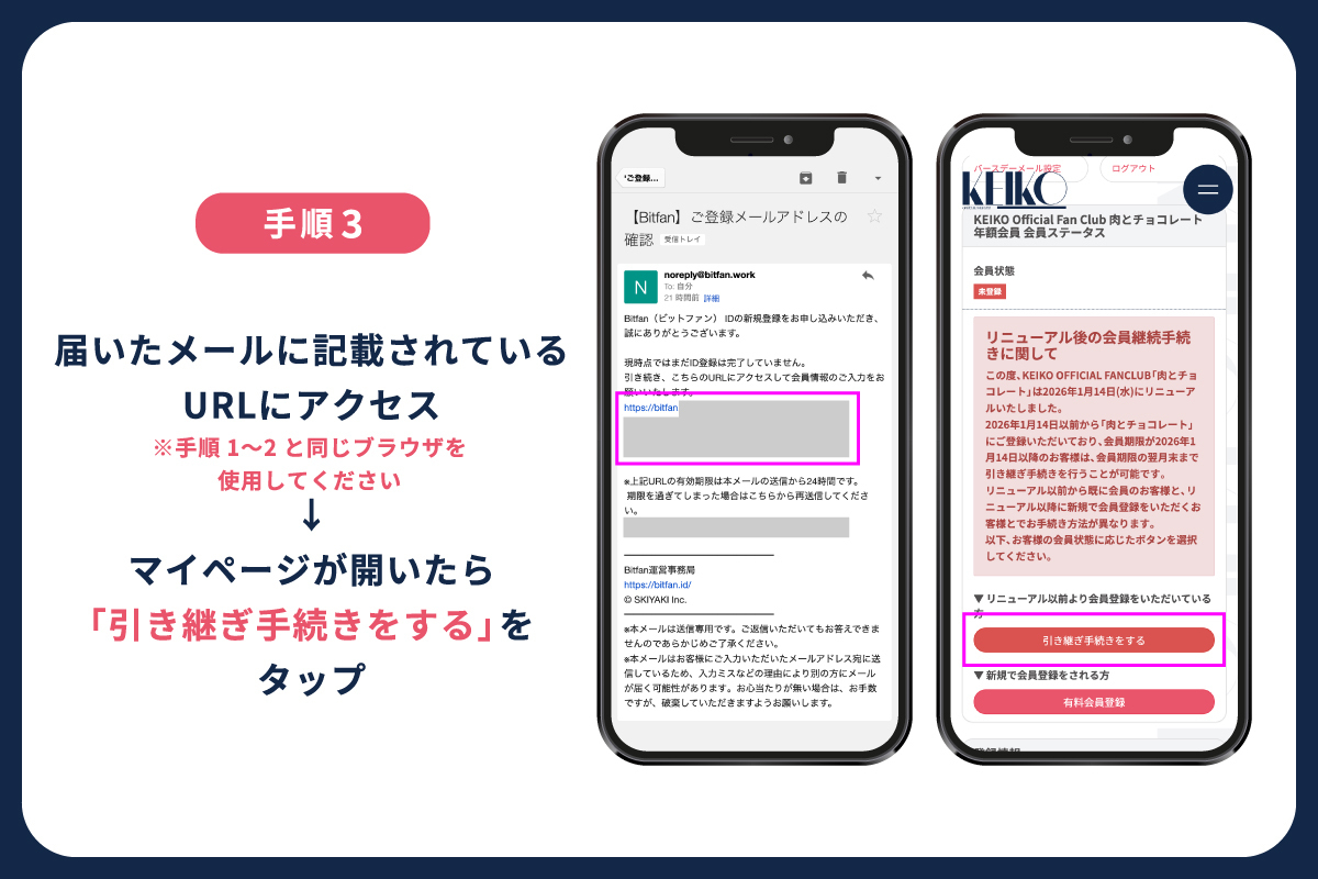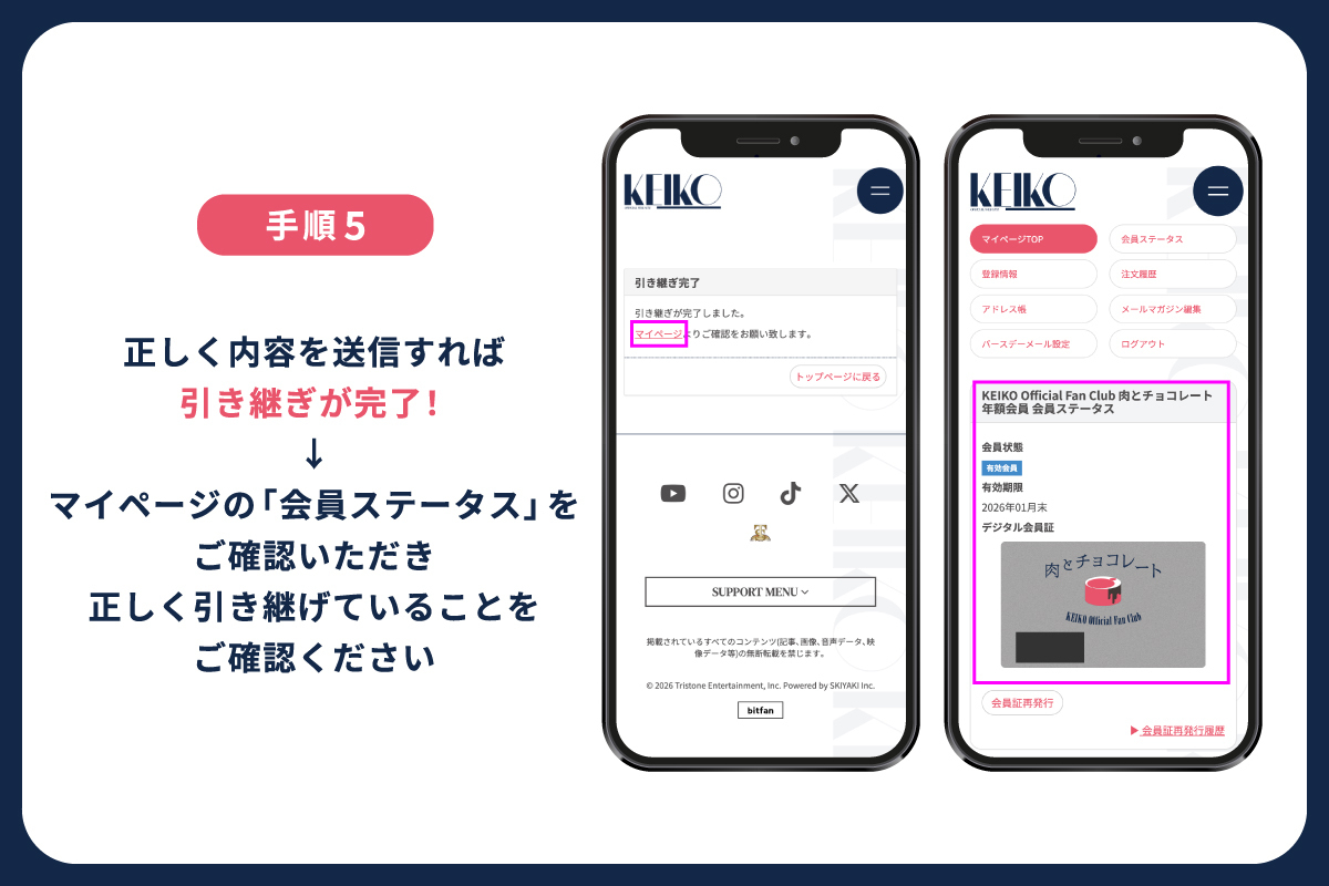 はじめに「Bitfan ID」の新規登録後、会員有効期限までに引き継ぎのお手続きをお願いいたします。